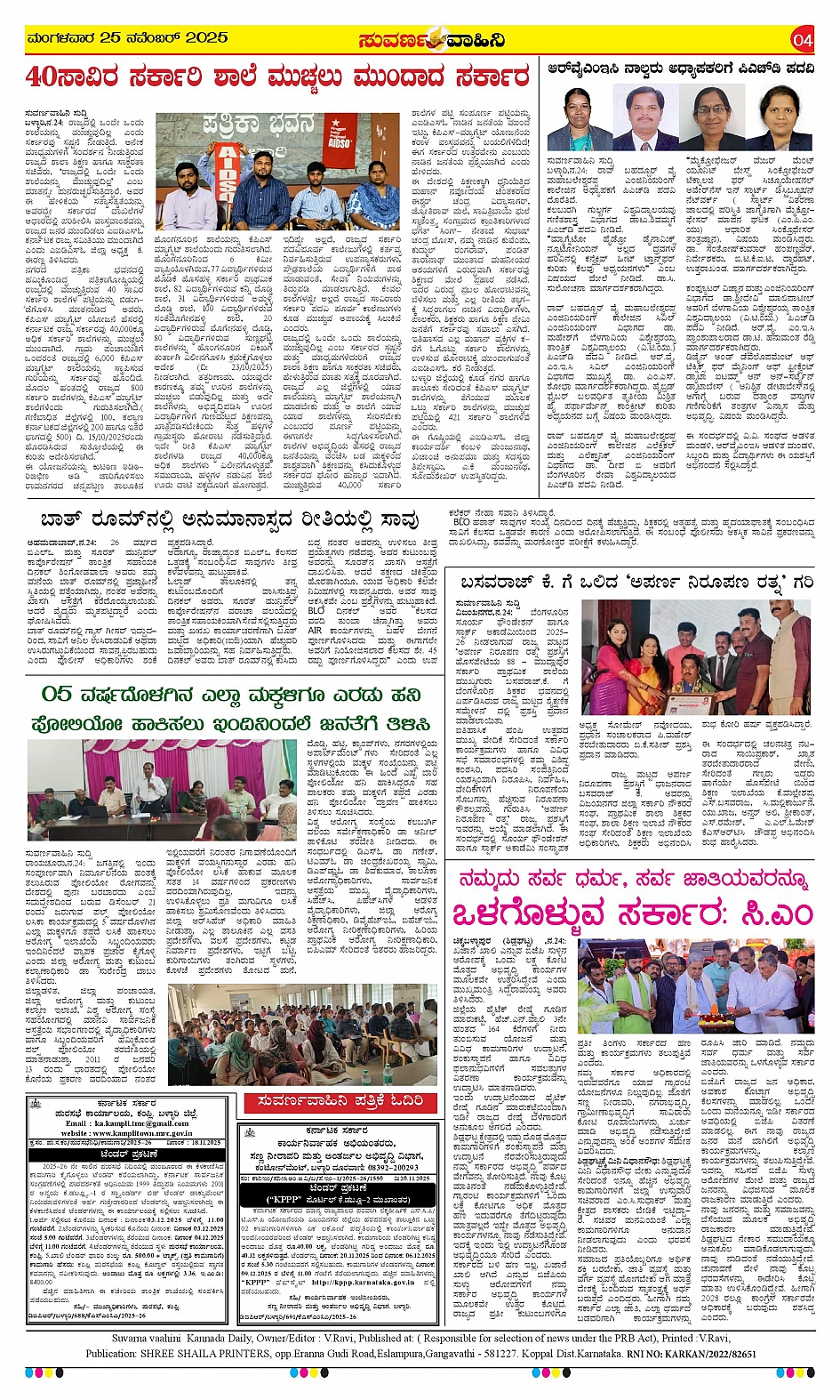 25 ನವೆಂಬರ್ 2025 Suvarna Vaahini Page: 4 November 25, 2025 << First << 4 >> Last >> Page 1Page 2Page 3Page 4 × 25 ನವೆಂಬರ್ 2025 Suvarna Vaahini page-1page-2page-3page-4 << First << 4 >> Last >> page-1page-2page-3page-4