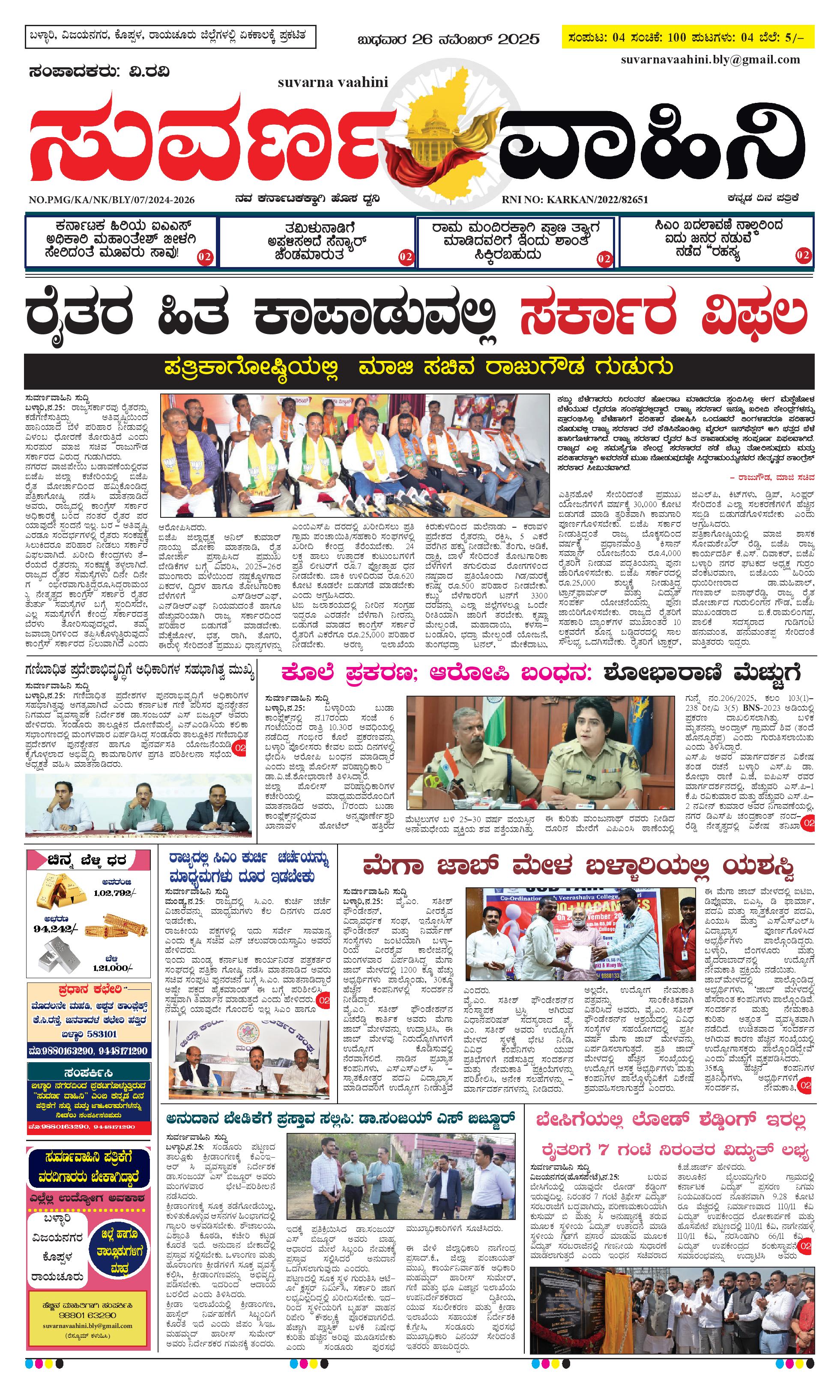 26 ನವೆಂಬರ್ 2025 Suvarna Vaahini November 26, 2025 << First << 1 >> Last >> Page 1Page 2Page 3Page 4 × 26 ನವೆಂಬರ್ 2025 Suvarna Vaahini page-1page-2page-3page-4 << First << 1 >> Last >> page-1page-2page-3page-4