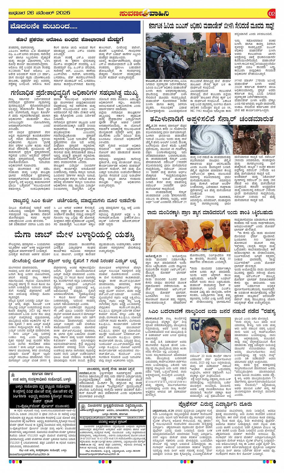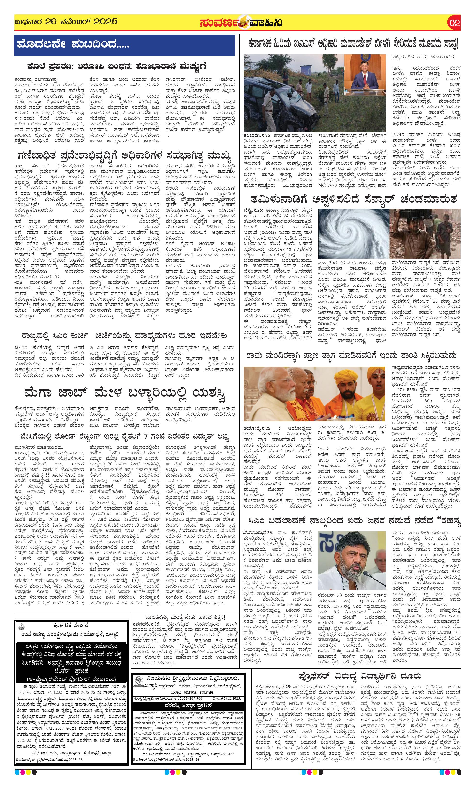 26 ನವೆಂಬರ್ 2025 Suvarna Vaahini Page: 2 November 26, 2025 << First << 2 >> Last >> Page 1Page 2Page 3Page 4 × 26 ನವೆಂಬರ್ 2025 Suvarna Vaahini page-1page-2page-3page-4 << First << 2 >> Last >> page-1page-2page-3page-4