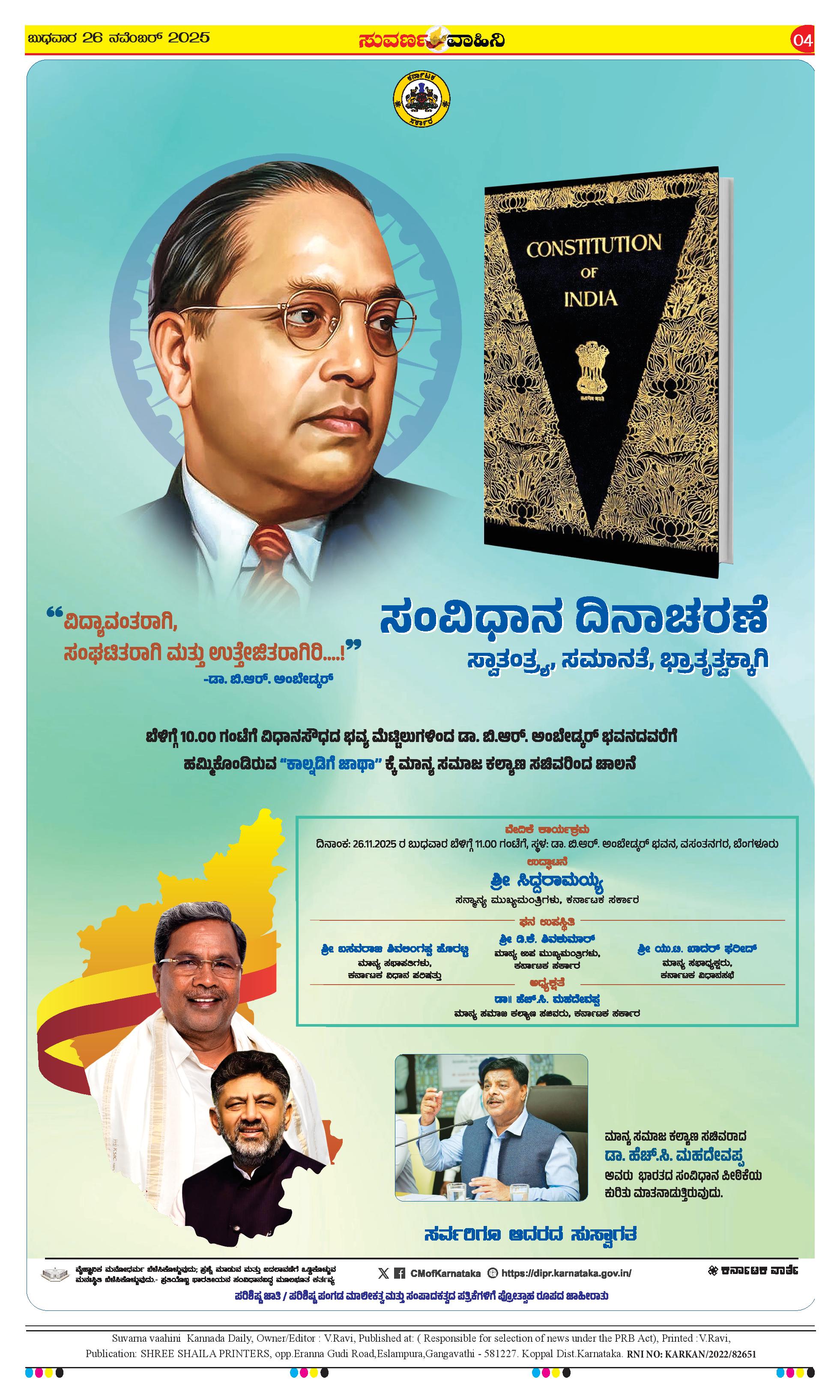 26 ನವೆಂಬರ್ 2025 Suvarna Vaahini Page: 4 November 26, 2025 << First << 4 >> Last >> Page 1Page 2Page 3Page 4 × 26 ನವೆಂಬರ್ 2025 Suvarna Vaahini page-1page-2page-3page-4 << First << 4 >> Last >> page-1page-2page-3page-4