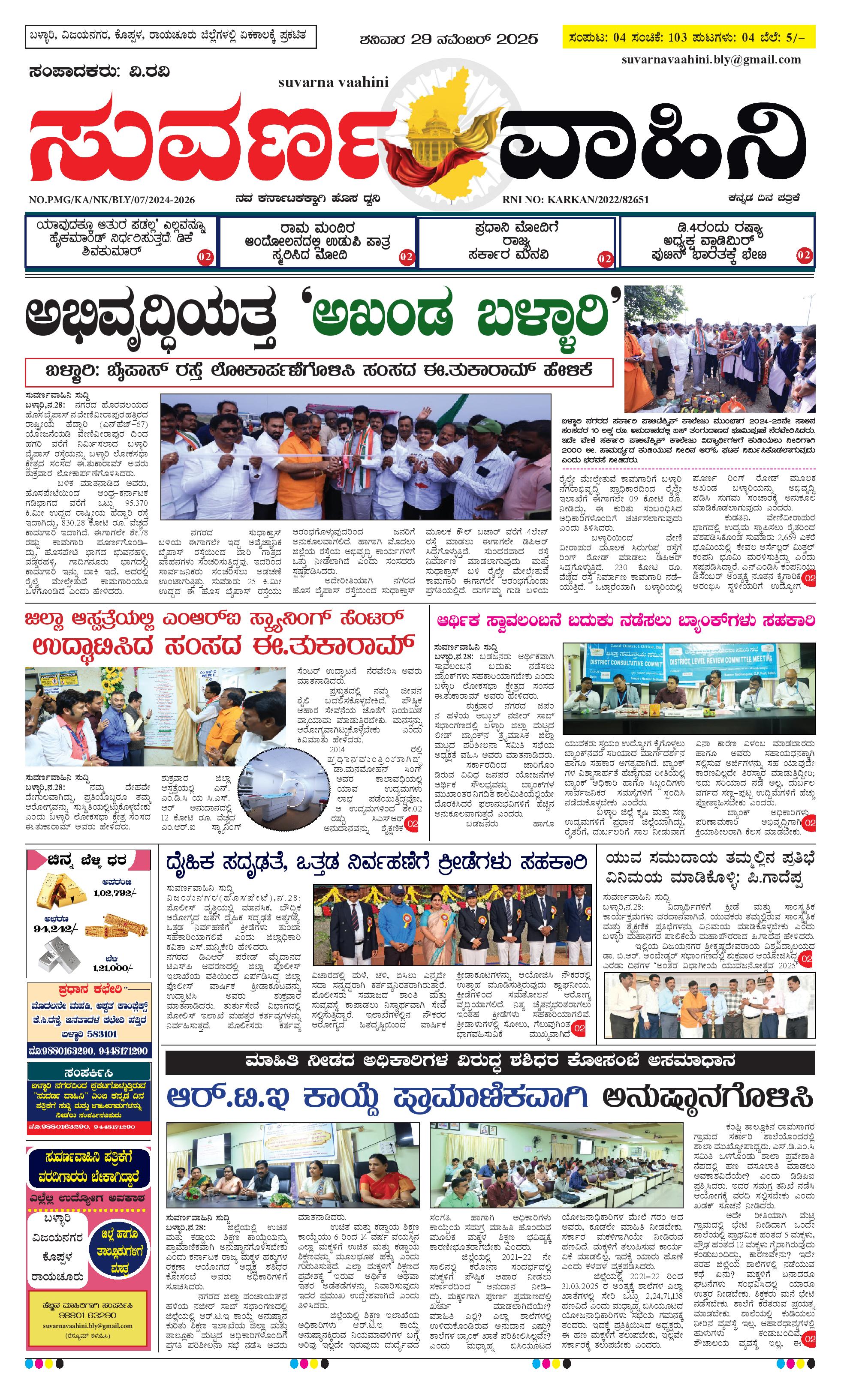 29 ನವೆಂಬರ್ 2025 Suvarna Vaahini November 29, 2025 << First << 1 >> Last >> Page 1Page 2Page 3Page 4 × 29 ನವೆಂಬರ್ 2025 Suvarna Vaahini page-1page-2page-3page-4 << First << 1 >> Last >> page-1page-2page-3page-4