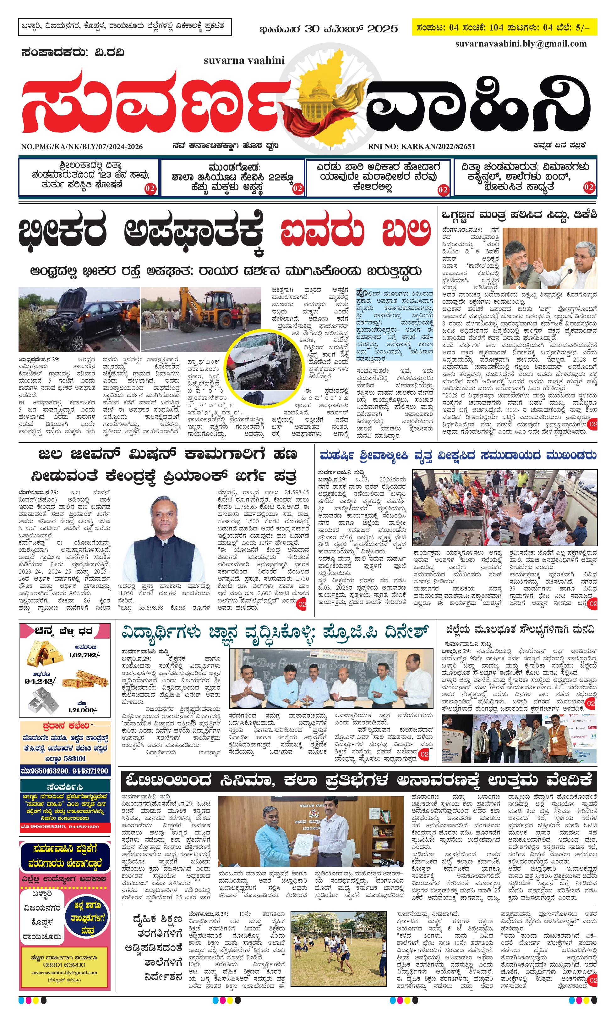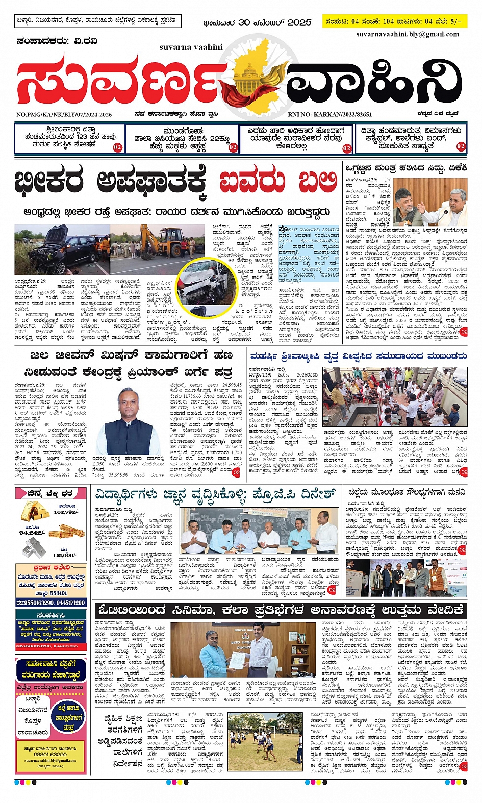 30 ನವೆಂಬರ್ 2025 Suvarna Vaahini November 30, 2025 << First << 1 >> Last >> Page 1Page 2Page 3Page 4 × 30 ನವೆಂಬರ್ 2025 Suvarna Vaahini page-1page-2page-3page-4 << First << 1 >> Last >> page-1page-2page-3page-4